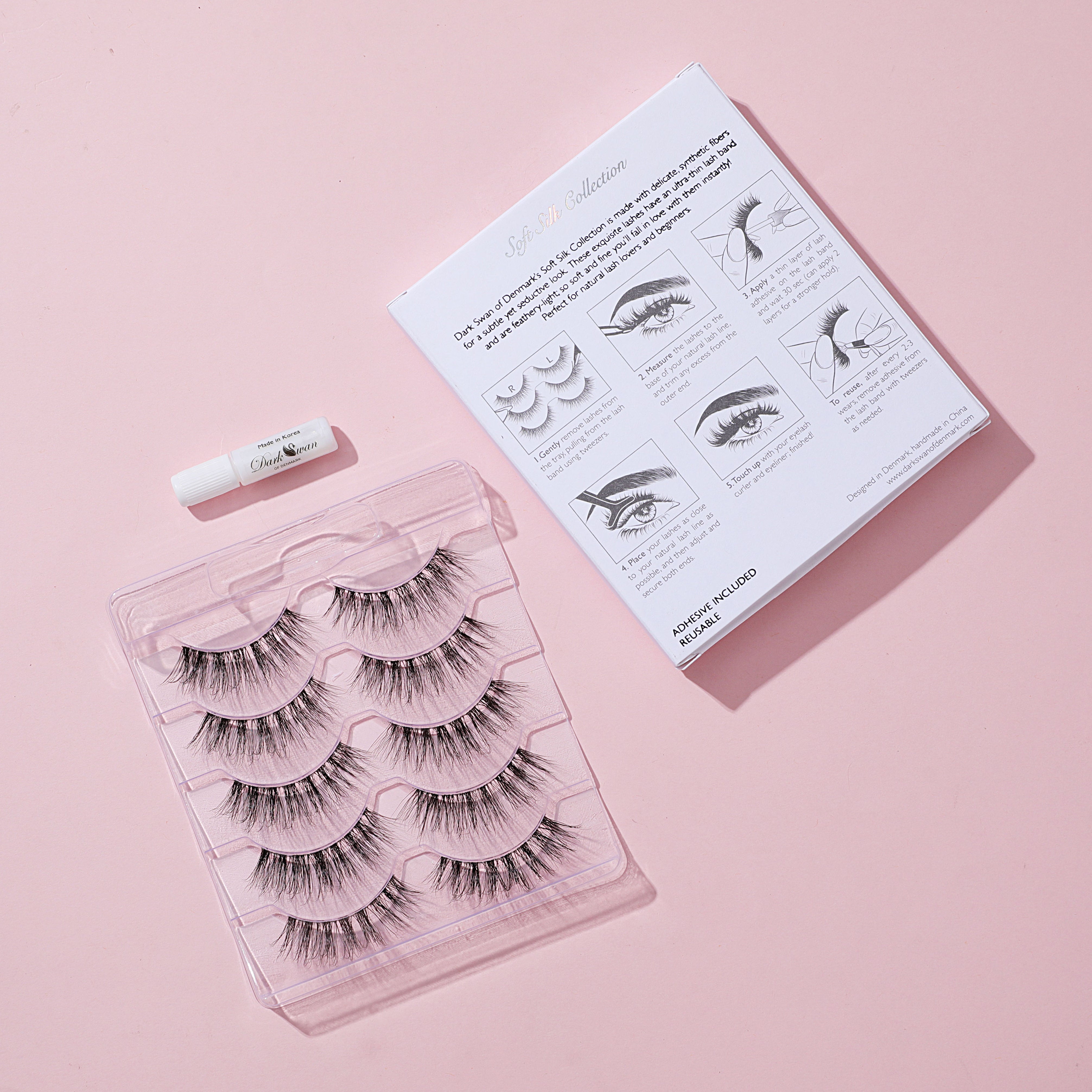 They are designed to be reusable, allowing you to enjoy their stunning effect multiple times. Each box of our Soft Silk Collection also includes premium lash adhesive, ensuring a secure and long-lasting hold for your lashes.